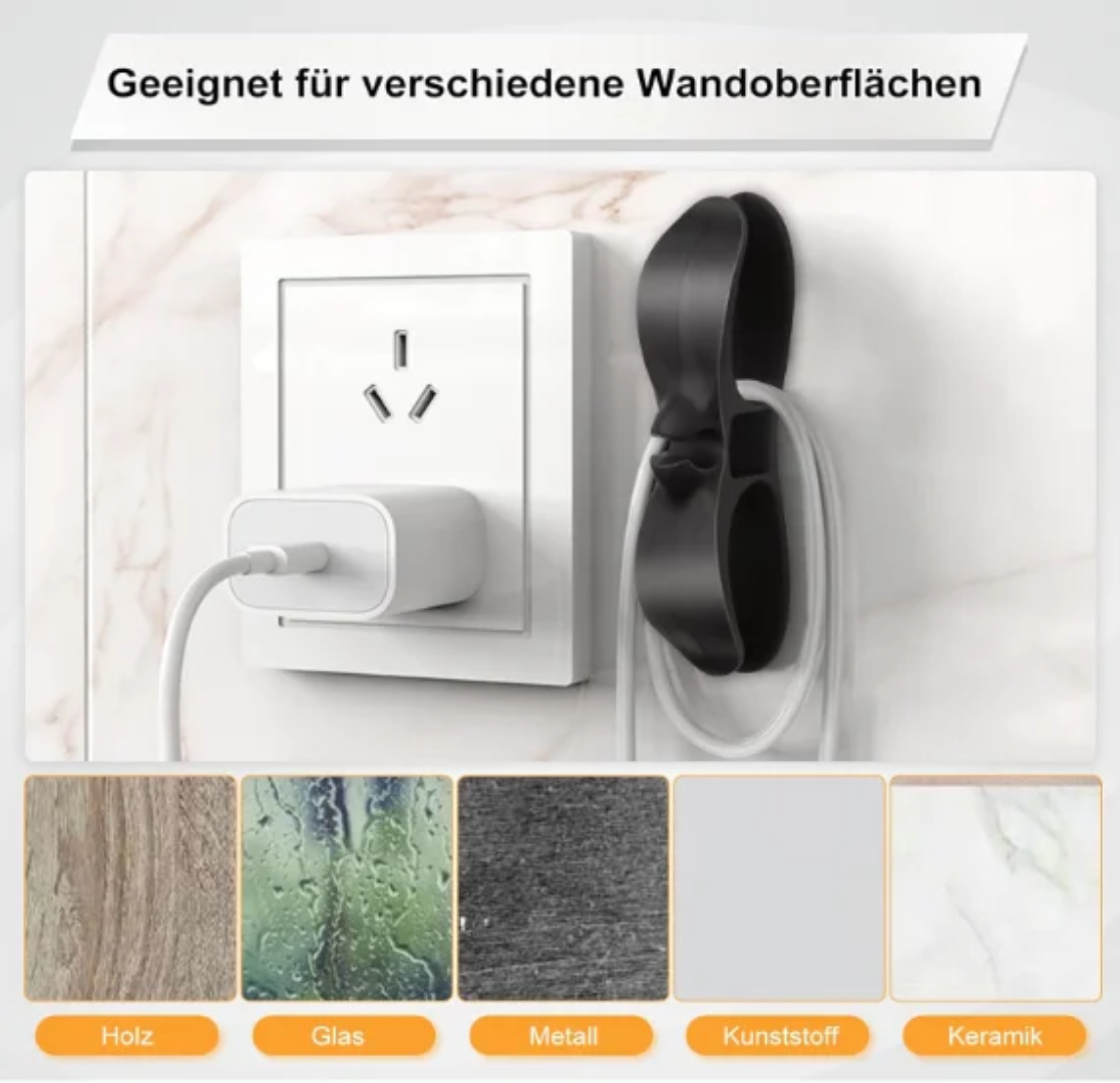 هولدر حامل للاسلاك بيتلزق على ضهر الجهاز وتلف عليه الفيشه وتثبتها في مكانها 👌